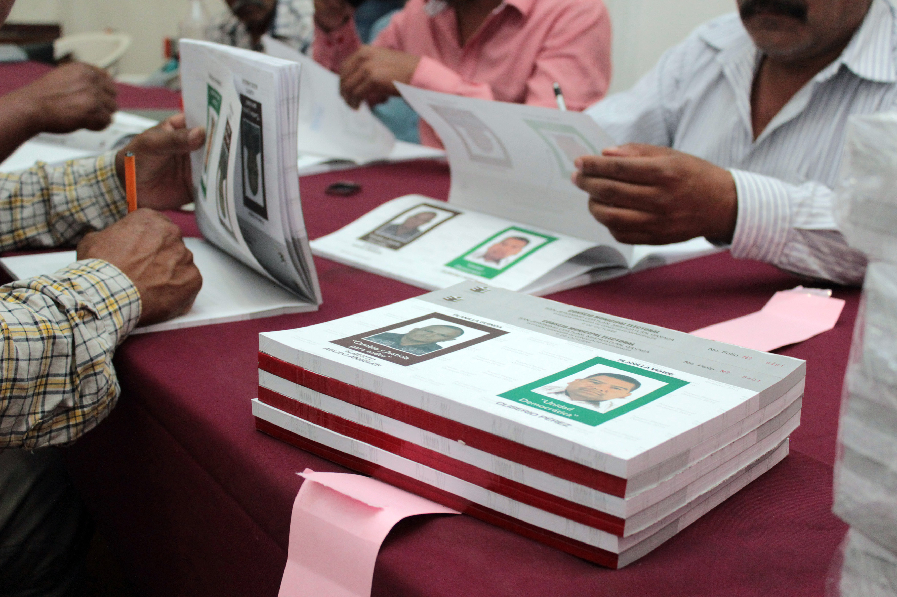 Sellado de boletas por integrantes del Consejo Municipal Electoral de San Jerónimo Coatlán