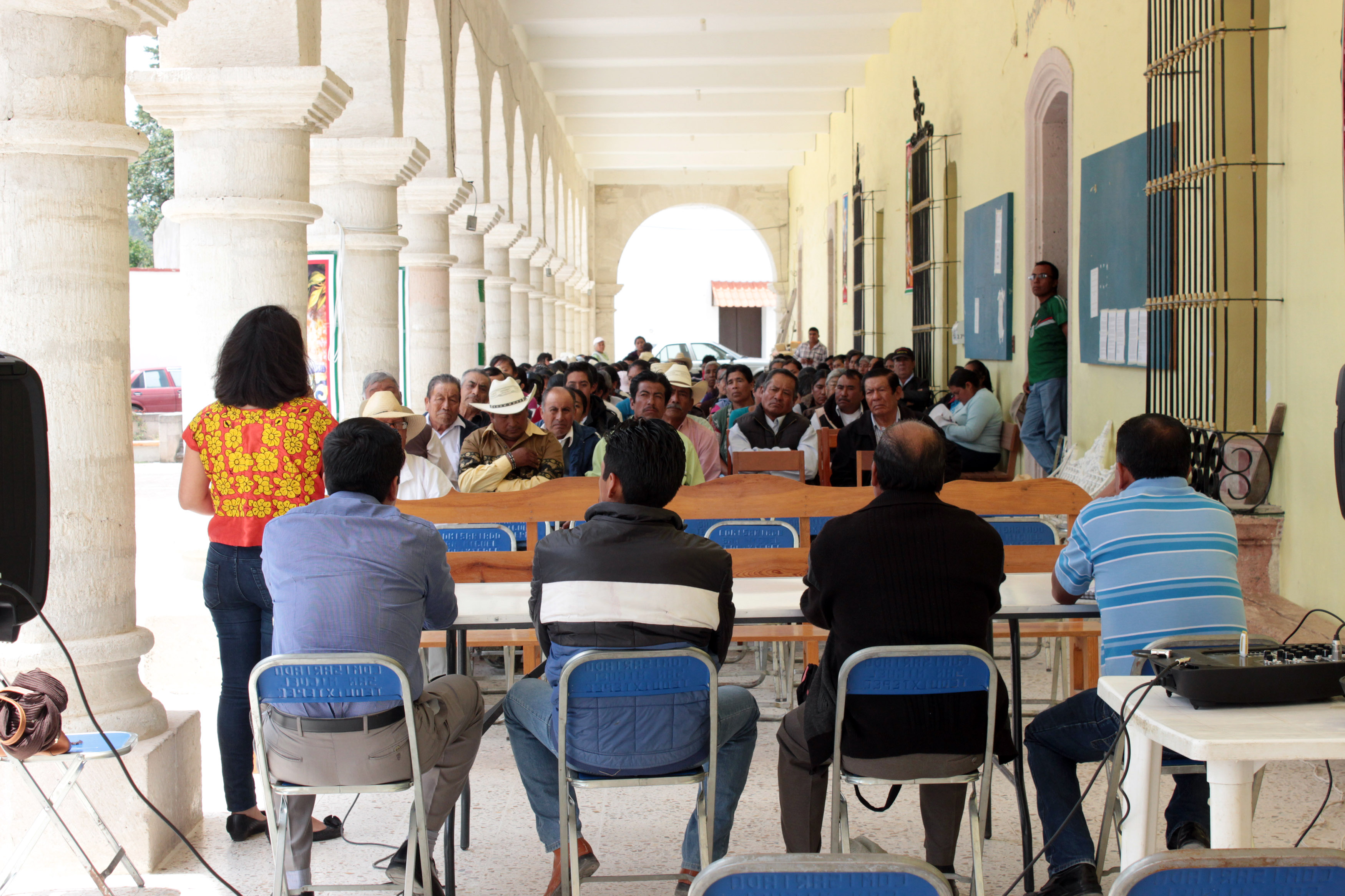 Participación del personal de la Dirección Ejecutiva de Sistemas Normativos Internos en la Asamblea Comunitaria de Información en el municipio de San Miguel Tequixtepec.