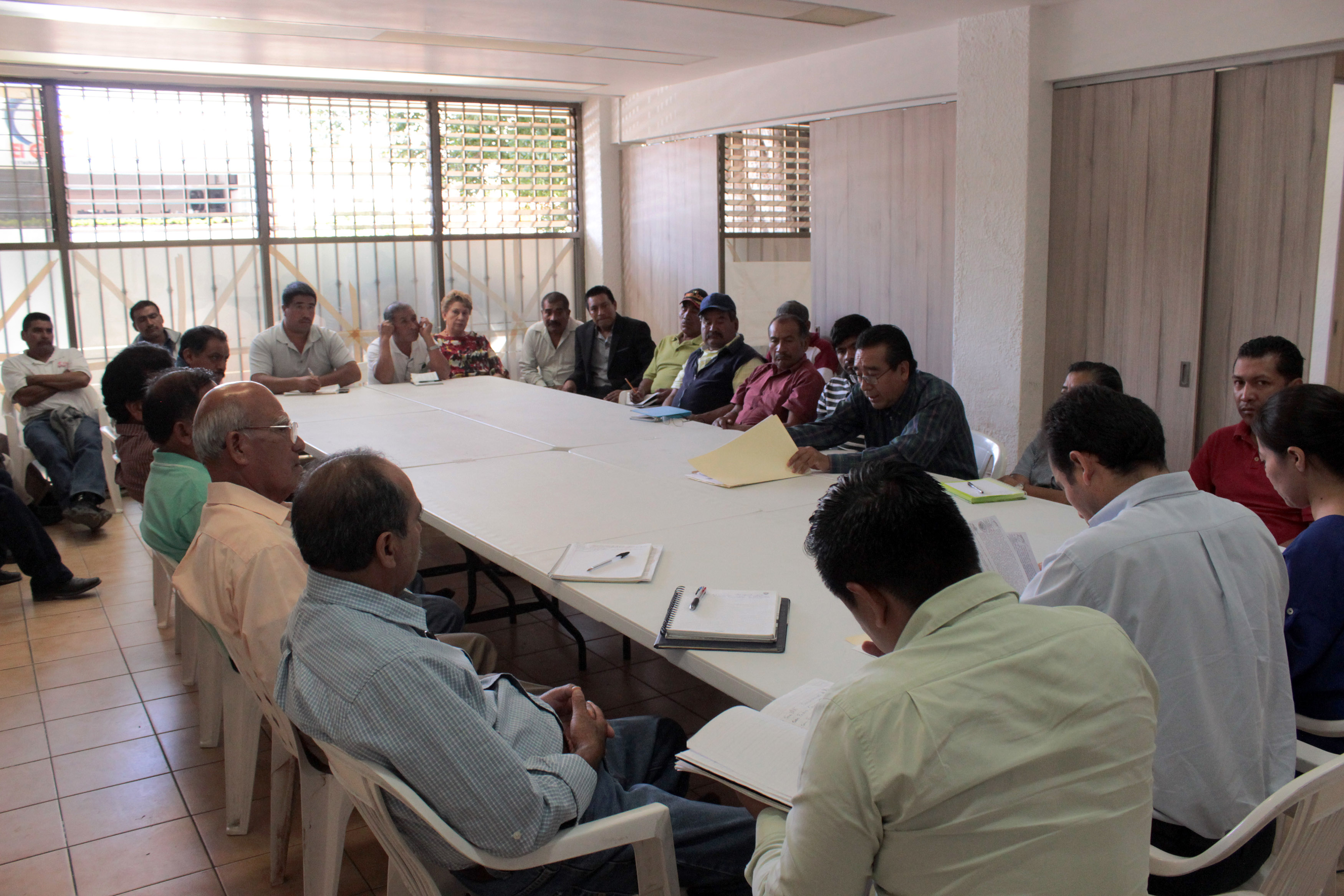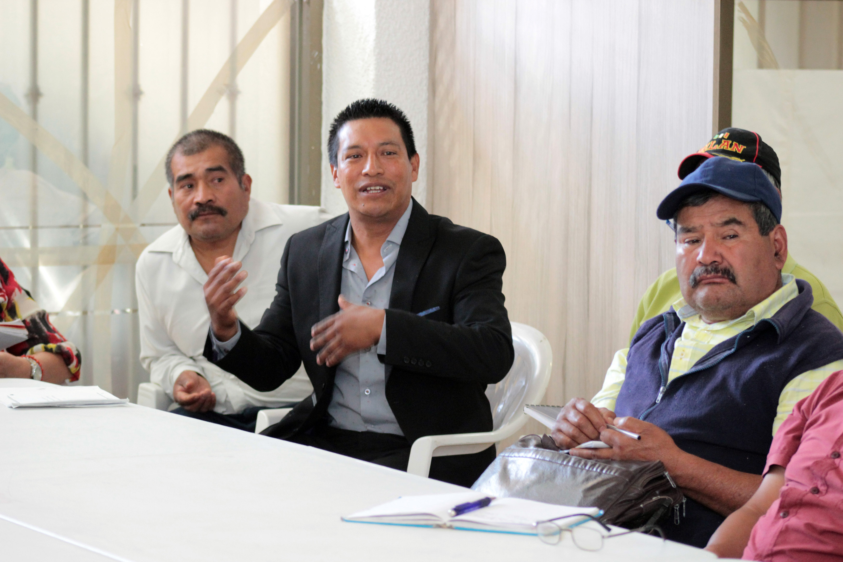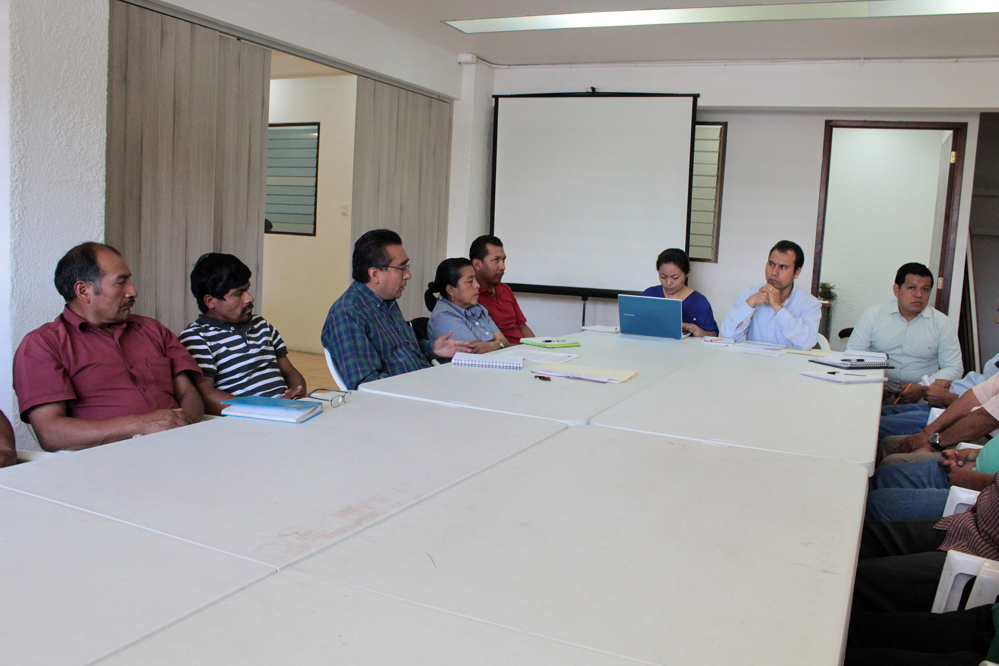 Personal de la Dirección Ejecutiva de Sistemas Normativos Internos participa en una reunión de mediación con habitantes del municipio de Santa Catarina Lachatao.